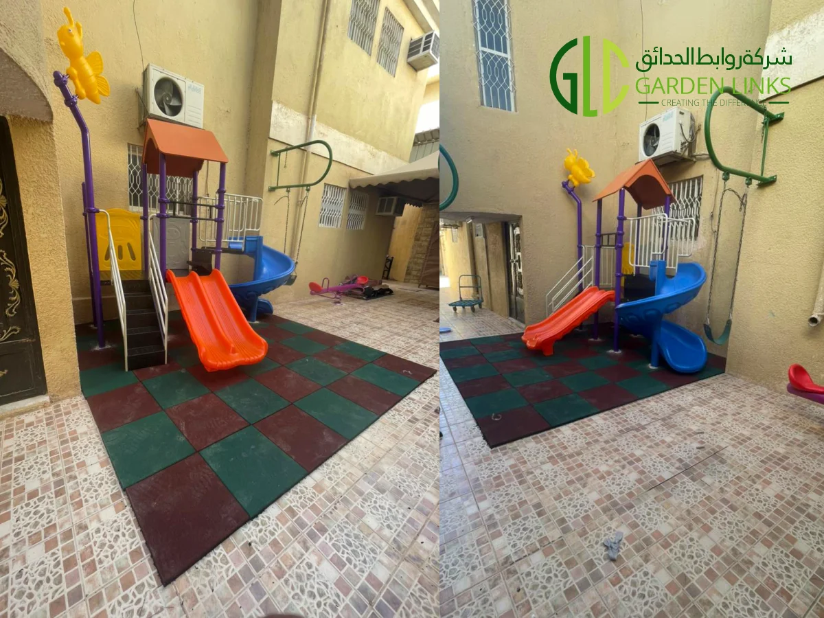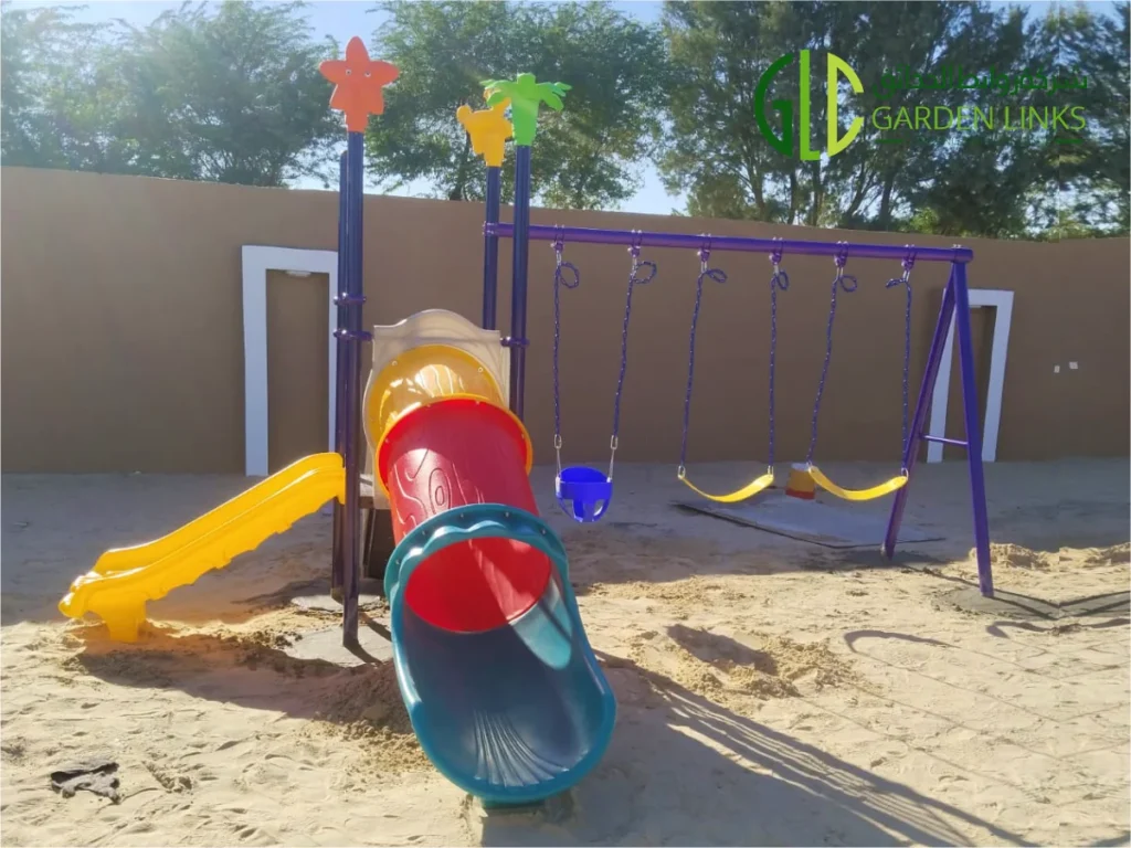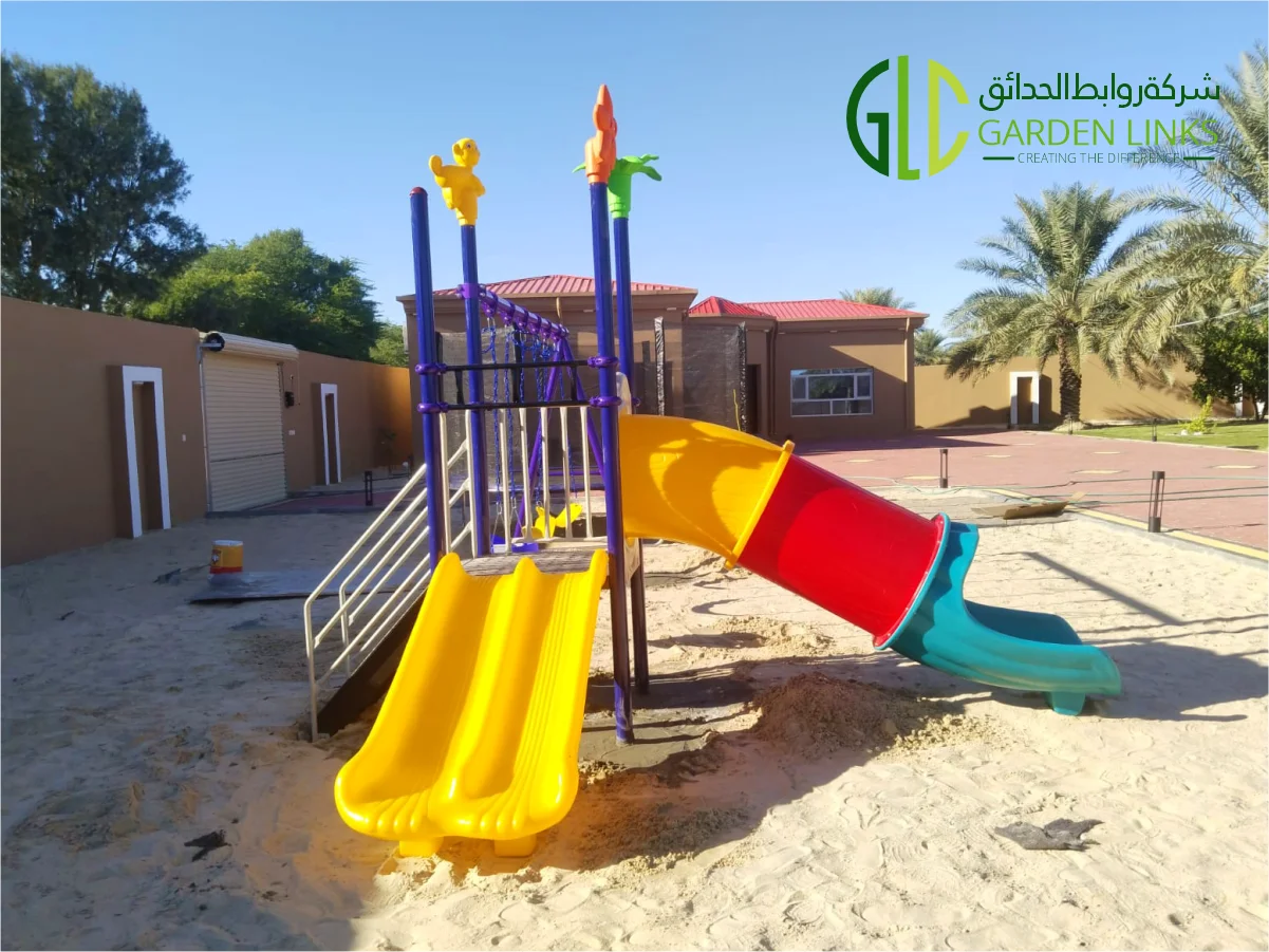 Garden Links Company successfully completed a home garden playground installation in Riyadh, delivering a safe, colorful, and engaging outdoor play environment for children within a private residential property.