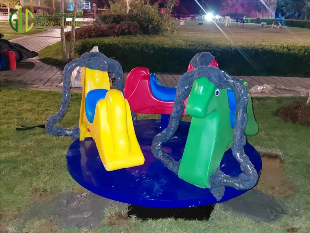 To diversify the activity options, round rotating play equipment was installed. This circular play unit supports group interaction and balance coordination for children.