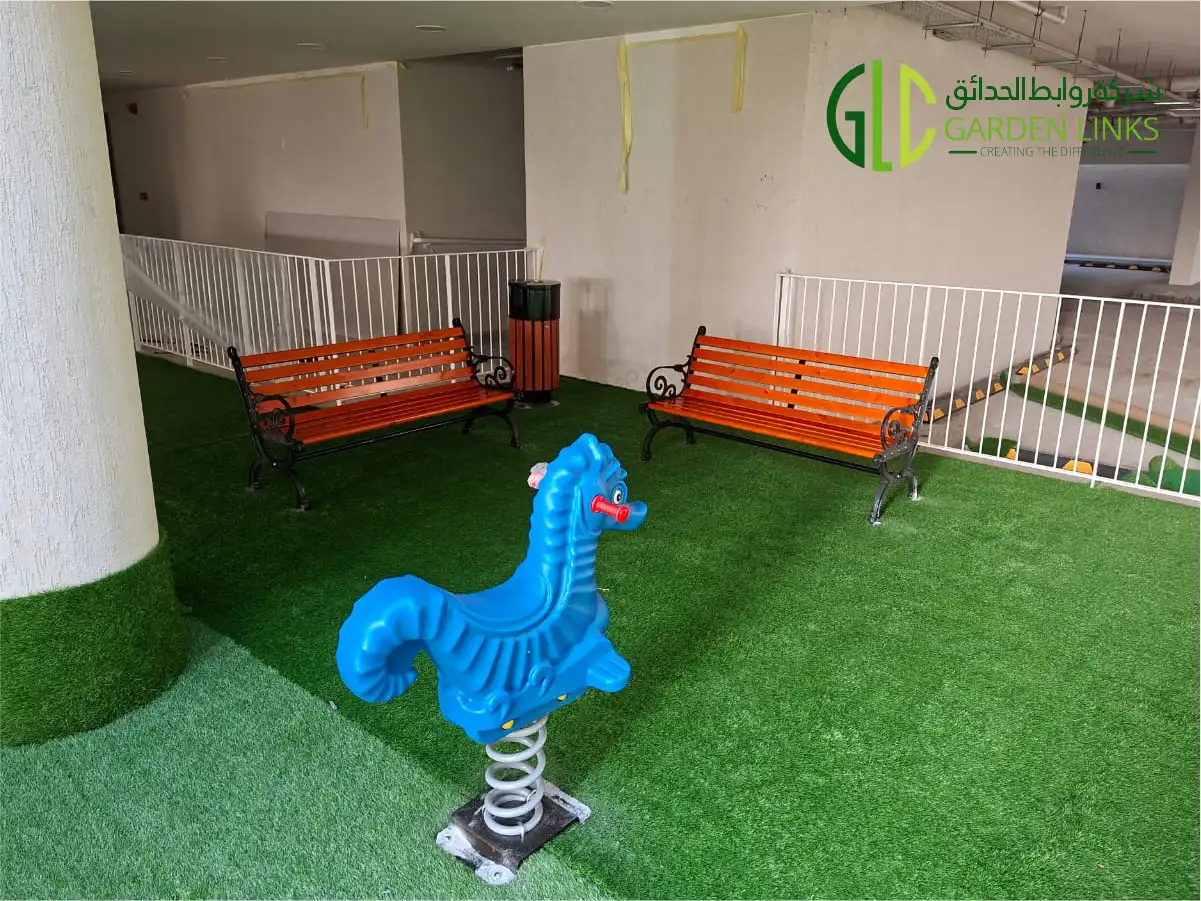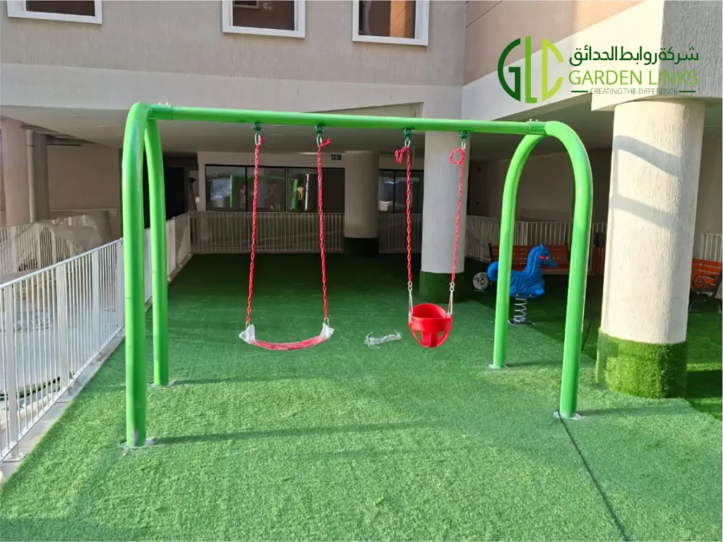 The Outdoor Playground Installation in Al Hofuf KSA is another successfully completed residential recreation project delivered by Garden Links Company. Located in Al Hofuf within Al Ahsa region, this playground was designed to create a safe, structured, and visually appealing outdoor play environment inside a modern residential complex.