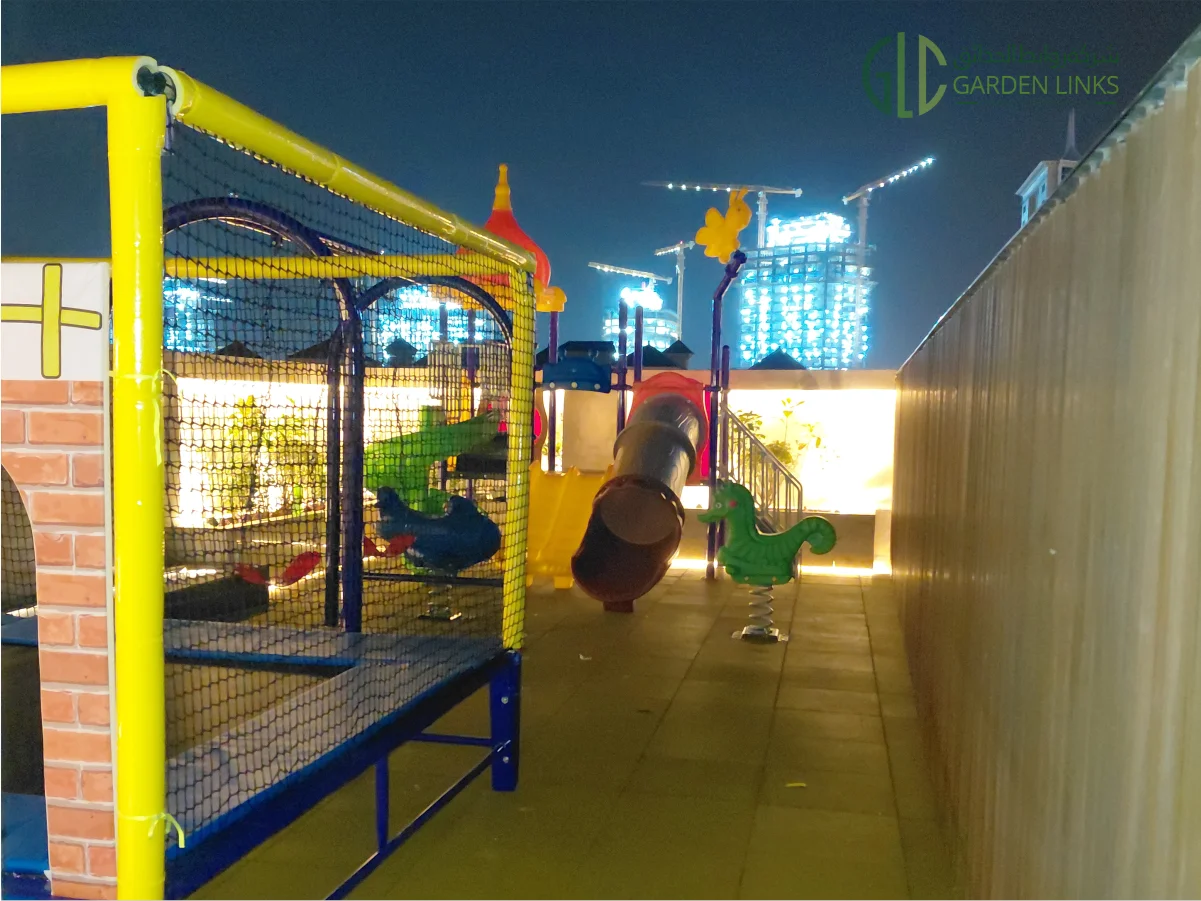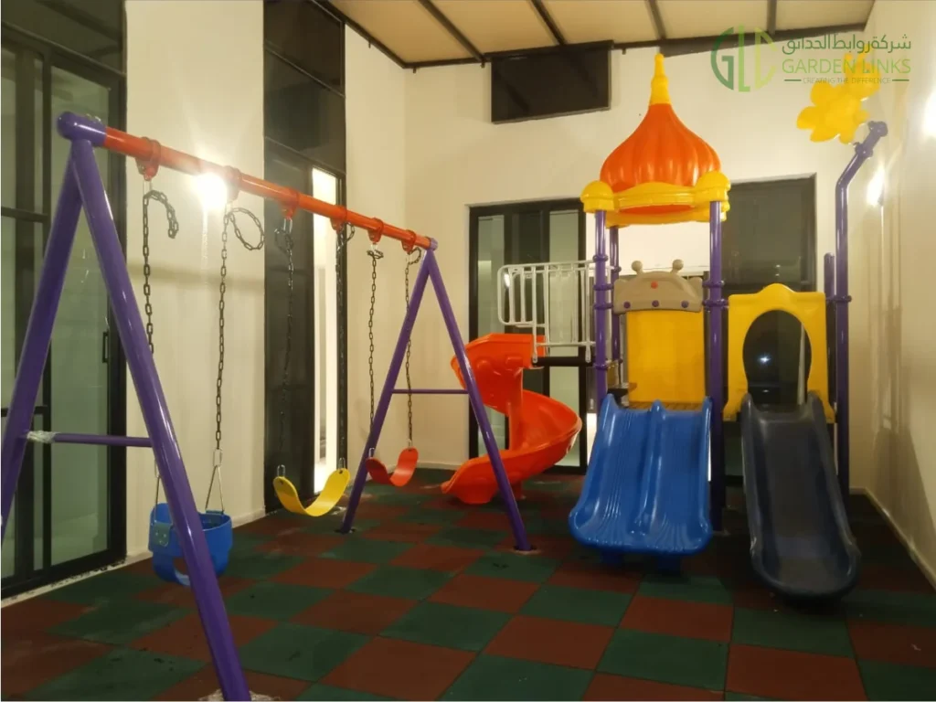 Garden Links Company successfully completed a residential playground installation in Al-Malqa District, Riyadh, delivering a fully integrated entertainment and play solution inside a premium residential resort. This project was designed to offer children a safe, engaging, and memorable play experience while adding significant functional and aesthetic value to the property.