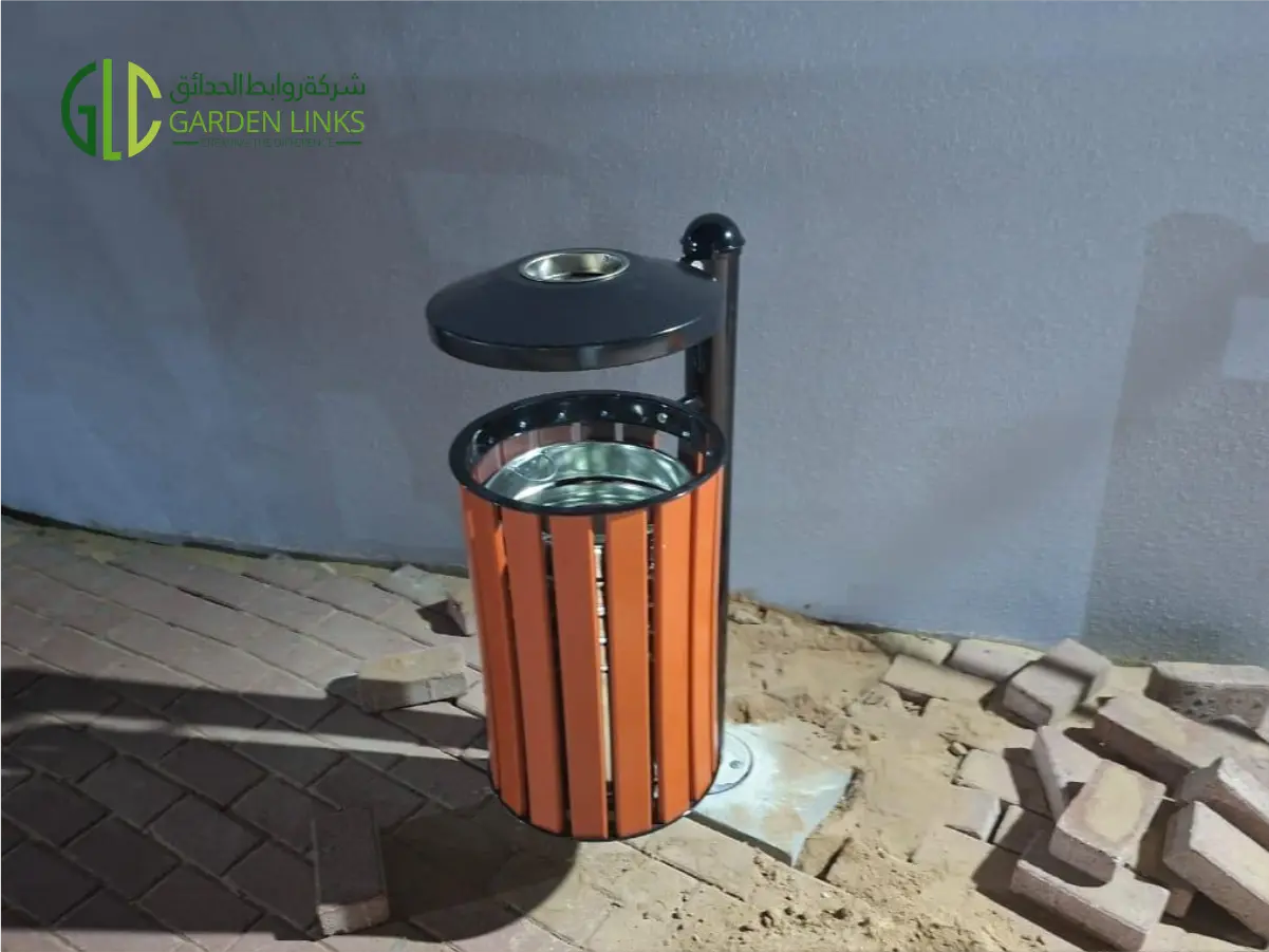 A durable trash bin unit was installed to maintain cleanliness within the playground zone. It includes: