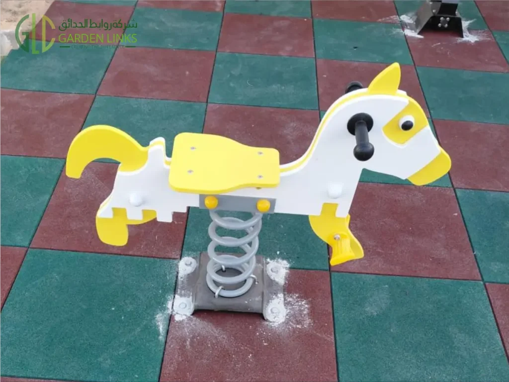 The spring rider adds interactive fun to the Residential Villa Playground Installation in Al Bahah. Mounted on a heavy-duty steel spring with secure base anchoring, it provides safe rocking motion while maintaining balance stability.