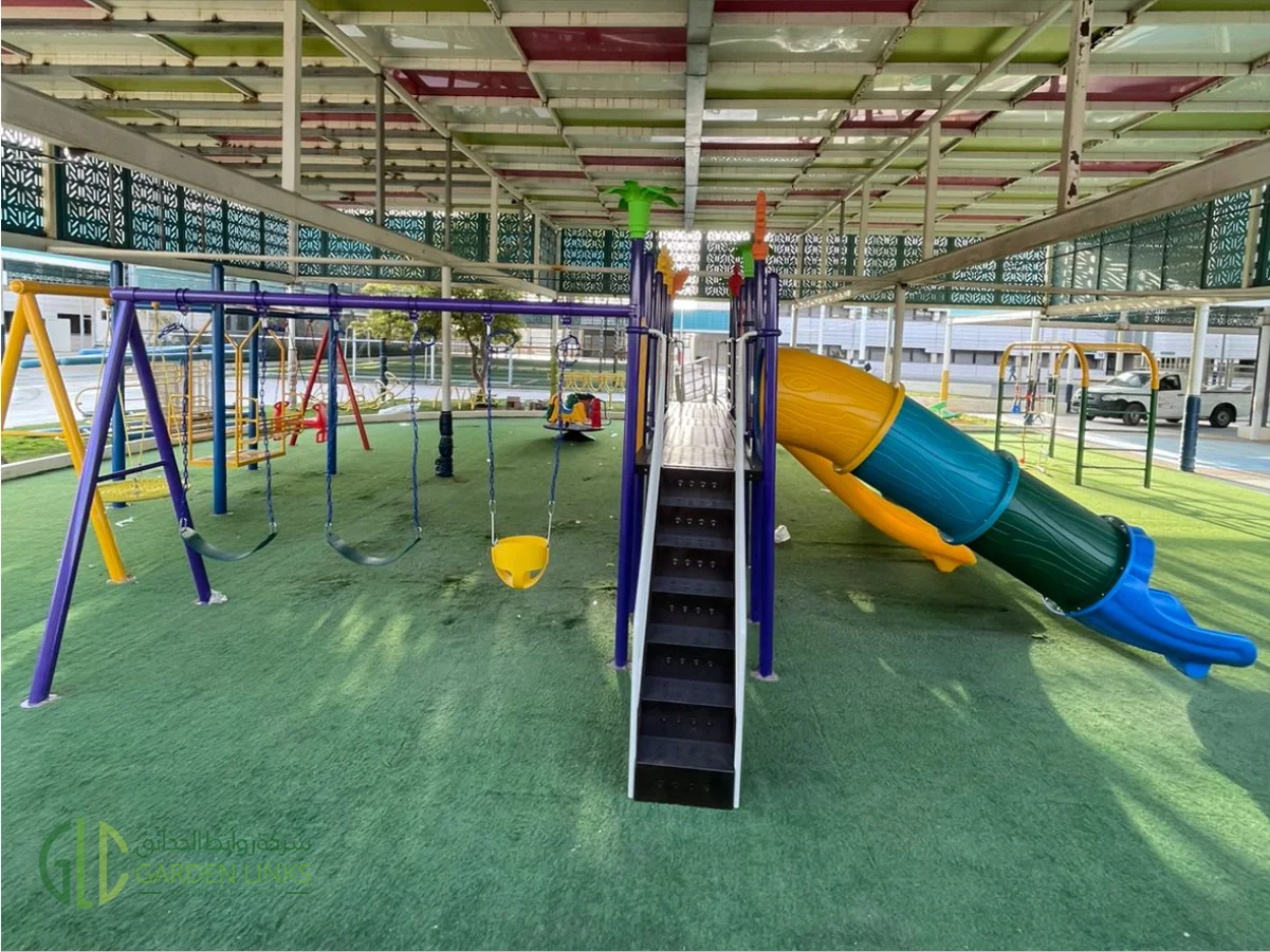 Garden Links Company successfully completed a school playground installation in Madinah, Saudi Arabia, delivering a safe, functional, and engaging outdoor play environment tailored specifically for a school setting. This project was executed as a complete turnkey solution, starting from site assessment and planning through to professional installation and final handover.